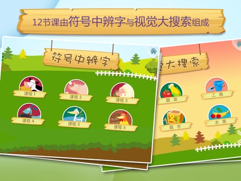 * 视觉大搜索六大类别:包括动物、蔬菜、工具、昆虫、数字和水果,增强儿童的视觉能力,提高儿童汉字学习能力。