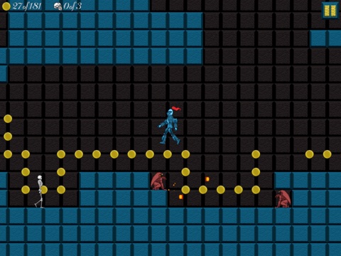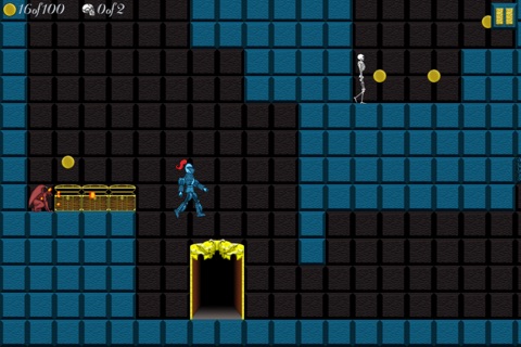 Play as a heroic knight and battle undead skeleton zombies. Sneak past gargoyles traps that spit fire. These demon monsters have been raised from the dead to eat your brains! Jump on their heads and kick them in the face and escape this castle. Inspired by the glory days of console gaming, the late 80′s early 90′s. Solve puzzles and discover secrets to find gold coins and treasure chests throughout 20 levels. Your magic armor does nothing to defend you from the skeletons that guard the treasure within the castle. You are a fearless knight, trapped in a dungeon without your trusty sword. To survive the epic battle of good versus evil you will have to jump on enemy heads just like you did back in the 8-bit 80′s. Play a retro side-scroller platform game on your iPhone or iPad. Find the key hidden in a treasure chest somewhere within the labyrinth, and then escape through the open door. Attack enemies by jumping on them. Don’t rush into the fight because if you get hit you will have to start the level over from the beginning.