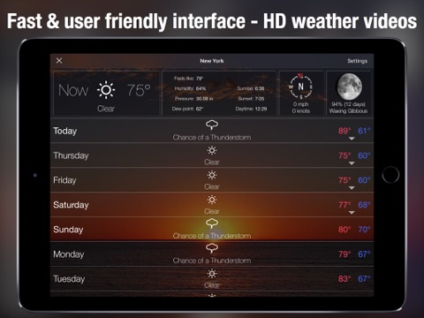 + Detailed Current Conditions including temperature, humidity, wind speed, and moon phase