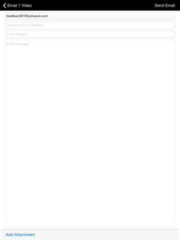 The 10 Foot Wave app provides access to your Video On Demand playlists, allowing you to showcase and share videos with your customers. Videos may be downloaded for viewing when you are not connected to the internet. You may also email videos to customers for them to view later.