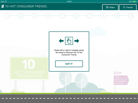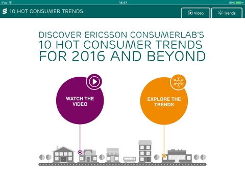 Ericsson ConsumerLab presents the 10 Hot Consumer Trends for 2016 and beyond. In this interactive app, take a walk through our consumer street and discover the major themes that emerged from our global research.