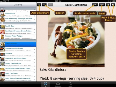 * Summary Views with THUMBNAIL preview of each recipe in alphabetical order