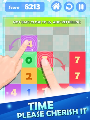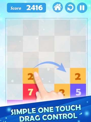 drag the adjacent tiles with same number, and they will pop up. Tap again, they will merge in the position you tap. Try to get 100, or even higher!