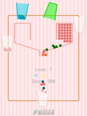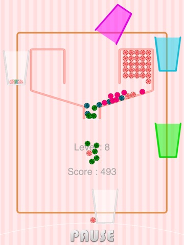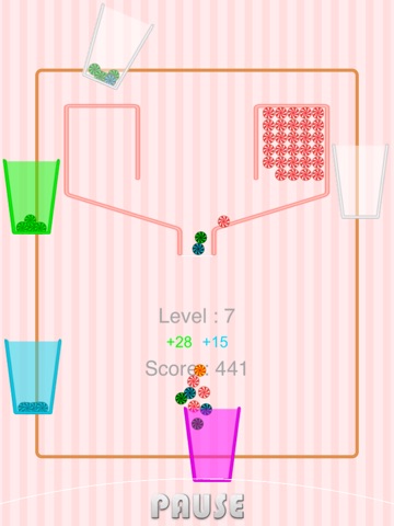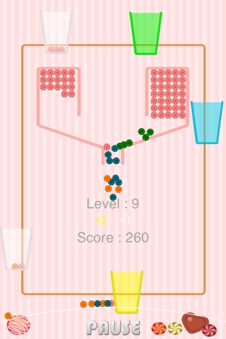 Tap on the screen to start dropping the candy. Your aim is to capture the falling candy into the cups.