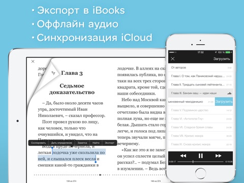 • Возможность экспорта эл. книг в iBooks.