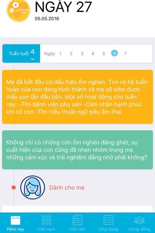 - Những công cụ đắc lực: Tính ngày dự sinh; Hình ảnh sự phát triển của thai kỳ; Theo dõi cân nặng khi mang thai; Lịch tiêm phòng; Lưu ý khi nuôi con bằng sữa mẹ; An toàn cho bé và hơn thế nữa