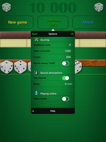 Très bon jeu. Dommage quil ny ai pas plus doption de parametrage de partie (.genre 3 dés de 2 obtenu dun coup annule le dernier score marqué du joueur précédant ou limpossibilité de scorer si un 50 reste en banque ou en jeu ou bien encore de pouvoir multiplier par deux sa banque si on réussi le dernier dé,...) vivement quon puisse jouer en ligne.