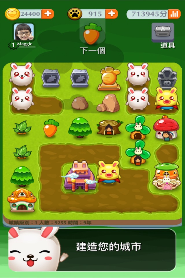 In the boundless sea, there is one small island, called rainbow town. On the island, the residents are often disturbed by the bears and become less happy with their lives. Until one day, you come the island as the new mayor. You are bound to bring the people happy life. As mayor, you are assigned some kind of magic, when the same level of three or more objects match together, magic will work on, high-level items will appear.