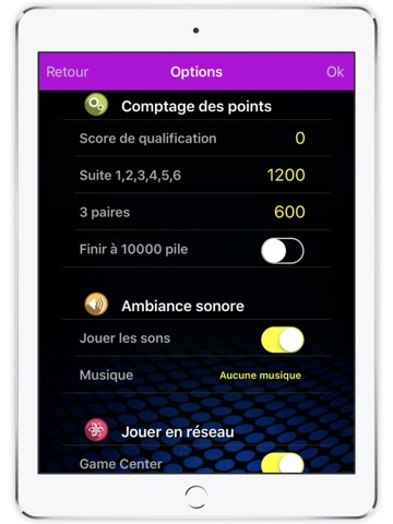 Diverse options are proposed to pigment the game or to adapt the game to the rules which you are used to practising.
