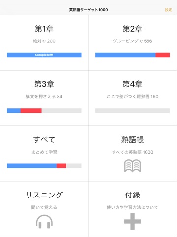 ・すべて/各章/各パートの英熟語をタイル表示で一覧