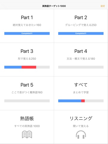・すべて/各パート/各セクションの英熟語をタイル表示で一覧