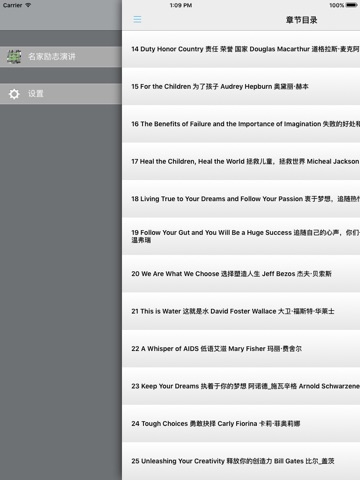 本应用精选的演讲可谓记录了时代的进步和历史重大时刻。例如由《时代》周刊权威评选出的十大毕业演讲,本应用就包括了乔布斯,J.K.罗琳和大卫·华莱士以及拉塞尔·贝克等人的时代之音。而由英国《卫报》评选出的最经典演讲则包括了英国二战时首相丘吉尔和大家熟知的铁娘子撒切尔夫人激情演讲等。