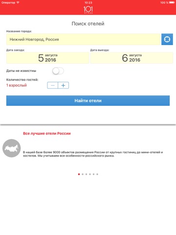 Приложение «101 Отель» позволит без труда найти и забронировать номер в гостинице по выгодной цене в любом уголке России.