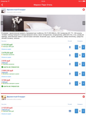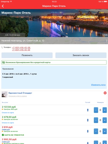 - поиск доступных номеров среди более 9000 отелей по всей России;