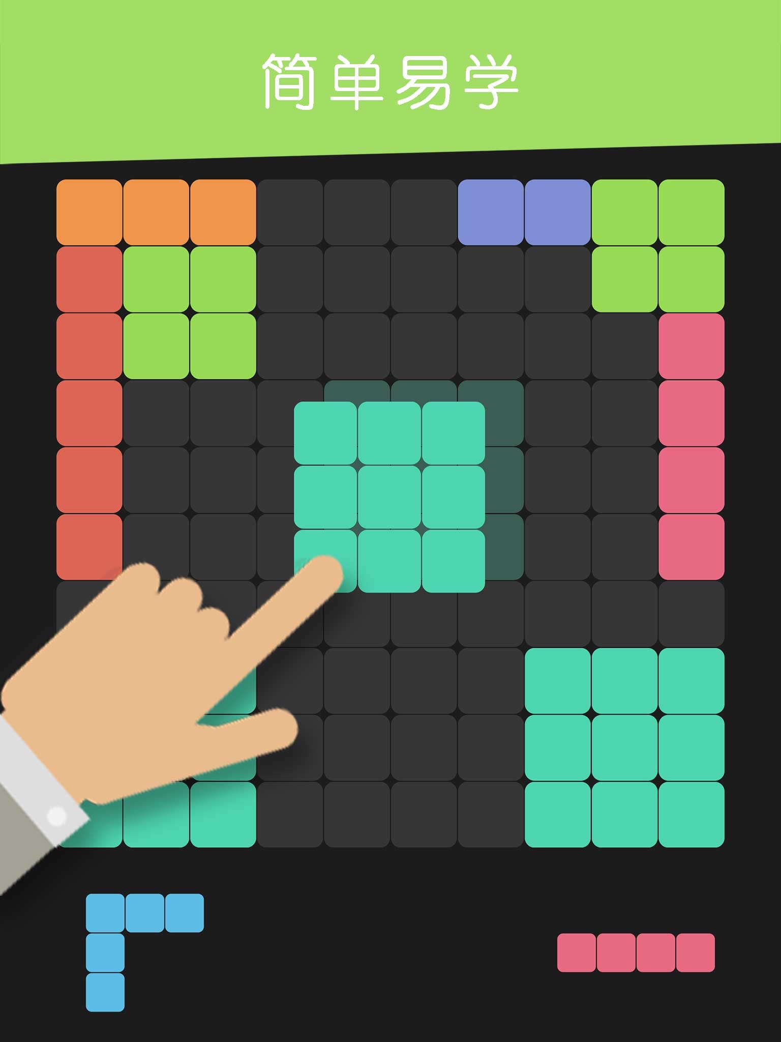 Just dray and drop the blocks into the 10x10 board,create and eliminate entire lines on the screen both vertically and horizontally and stop the blocks to fill the 1010 board.