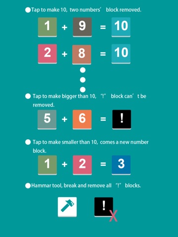 3.Tap two numbers to make bigger than 10, rock "!" become;