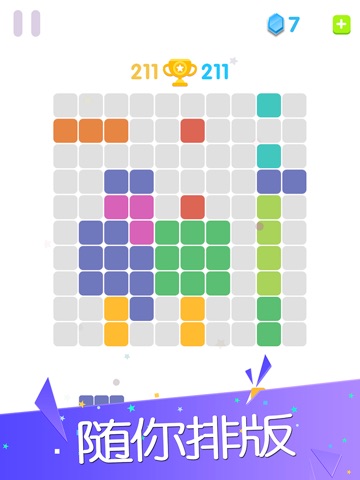 The rules of the game: in this make fascinating puzzle game, simply drag and drop module to the screen, in the vertical and horizontal directions create and eliminate the whole line module, blocking module to fill the entire screen. There is no time limit, no color matching! Fill all grids with a matching module, and enjoy the game!