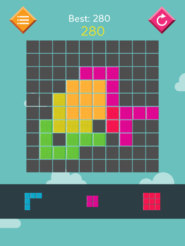 • Try to fit them all in the row or column. Then the block will be clear and you get the point. Game will be over if there are no room for any the shapes below the grid.