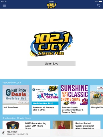 Listen to 102.1 CJCY-FM on your iPhone, iPad or iPod Touch. While you listen, see a live stream of what you hear on-air including songs, news, weather, community events and much more.