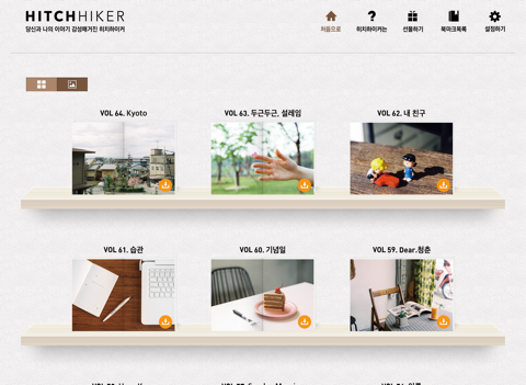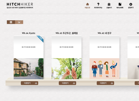 텐바이텐의 감성매거진 히치하이커는 지난 2006년부터 격월간으로 당신과 나, 우리의 이야기라 말할 수 있는 일상 속의 메시지를 담아내고 있습니다. 일 년에 여섯 번, 언제 어디서나 여러분 곁을 지키고픈 마음으로 기존의 종이책과 더불어 히치하이커 전자책을 발간하게 되었습니다. 아주 가까운 곳에 있는 이야기를 불러 모아 조금 더 멀리에 있는 모두의 내일을 내다보고, 그를 위한 응원을 아끼지 않는 글과 이미지로 구독해주시는 모든 분들의 이야기에 힘을 얻는, 또한 그 이야기에 힘을 실어드릴 수 있는 텐바이텐 히치하이커가 되도록 노력하겠습니다.