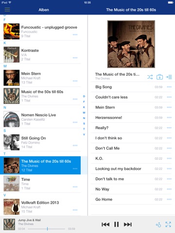 Geben Sie einfach Ihre Benutzerdaten* (E-Mail Adresse und Passwort) ein und schon haben Sie Zugriff auf Ihre komplette Sammlung. Die App ordnet dabei Ihre Musik nach Alben, Interpreten und Genres.