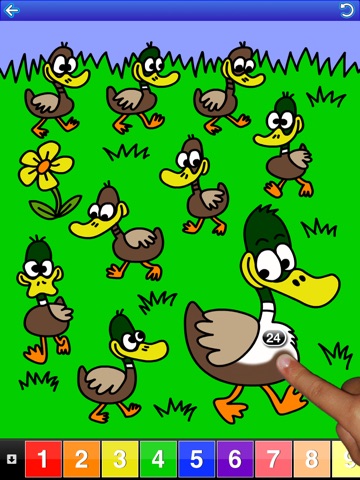 123 Couleur comprend plus de 400 cartoons, le tout à peindre librement au doigt ou à remplir par touché, avec voix-off pour les nombres, lettres et couleurs!
