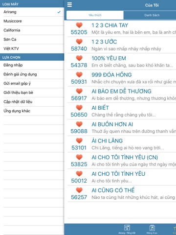 Ứng dụng hỗ trợ tìm mã bài hát karaoke với nhiều tính năng mới, cung cấp danh sách bài hát cho hầu hết các đầu karaoke phổ biến hiện nay bao gồm: Arirang, California, Musiccore, Sơn Ca, Việt KTV