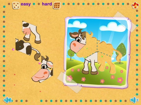 * Each picture/puzzle is available an easy (6 puzzle pieces) and difficult (9 puzzle pieces) mode.