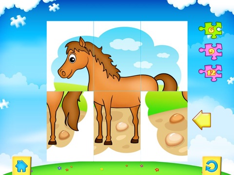 Each slider puzzle has 3 different levels of difficulty - 6, 9, or 12 pieces.