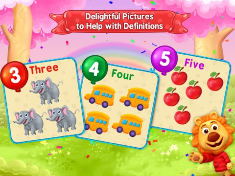 Learn to Count – Several types of objects will be displayed on the screen. Children count the objects and tap on each one to learn numbers individually.