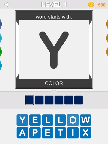 Vegetables, countries, flowers, human bodies, palindromes, families, and lots more categories to keep you addicted and entertained. Every level, you will be given 1 letter and 1 category to guess 1 word within the category. Guess it right and be rewarded with coins! Spend your coins on hints, remove letters, reveal letter, and skip to help you advance further into the game.