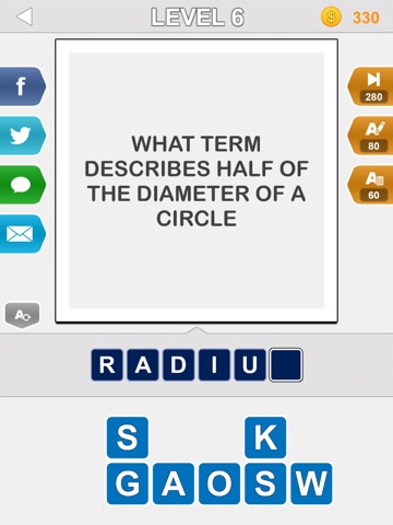 Collect coins with every answer and spend them on hints, remove letters, reveal letter, and skip
