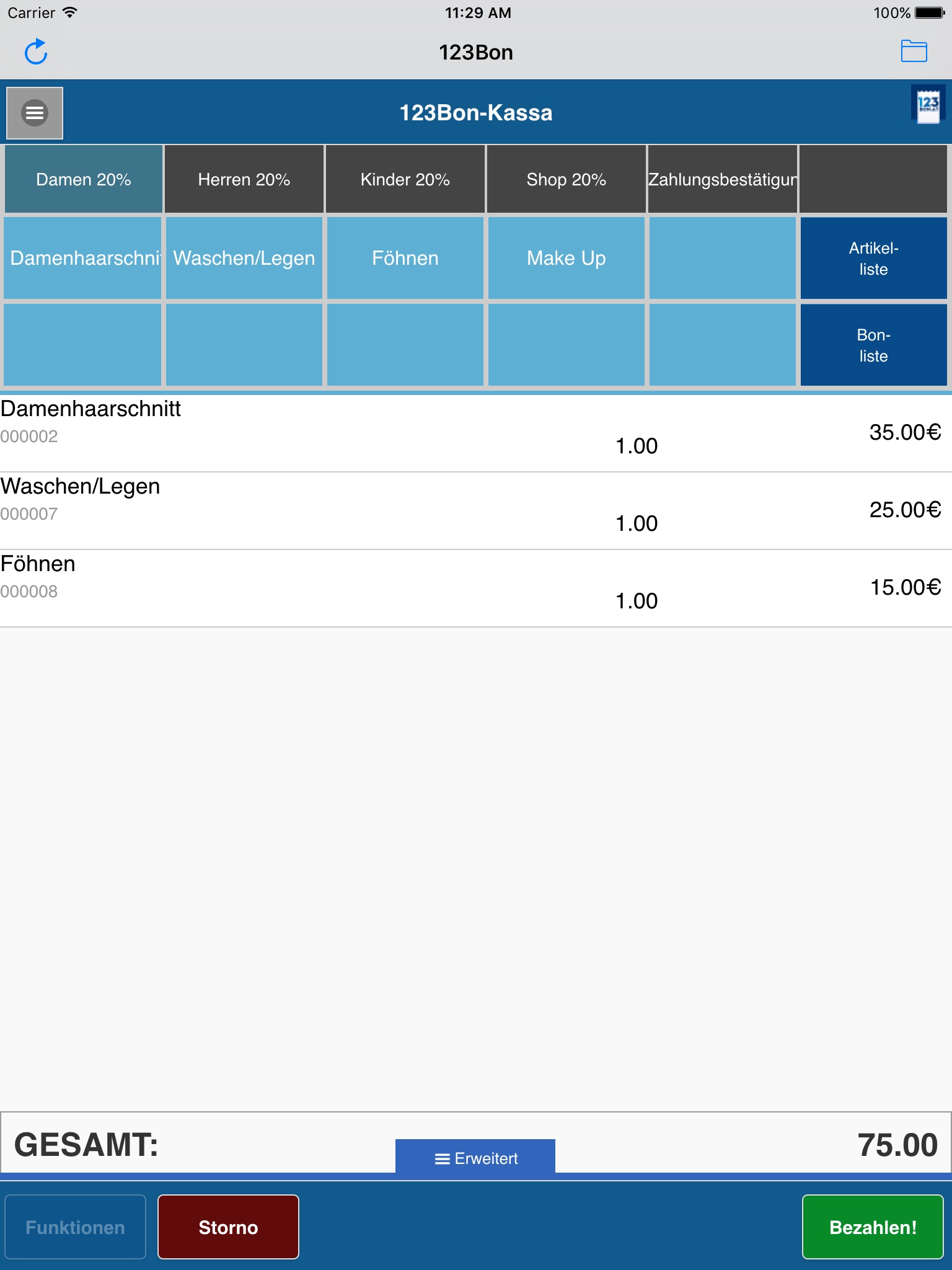 123bon.at ist ein Allround System mit branchenbezogenen Funktionen, wie Schnellzahlungen bei Bars, Filialsystem, Anbindung von stationären und mobilen Kartenterminals.