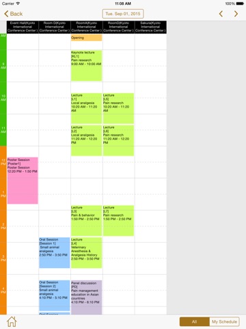 You can switch the Time Table display into all sessions or My Schedule. With My Schedule you can see sessions include presentations you have registered.