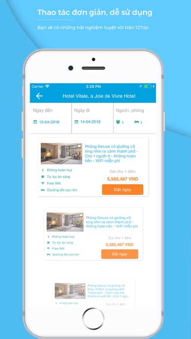 12Trip là ứng dụng cung cấp dịch vụ đặt phòng trực tuyến với mức giá tốt nhất đem lại những thông tin hữu ích để giúp bạn lên kế hoạch cho những chuyến đi tuyệt vời của mình.