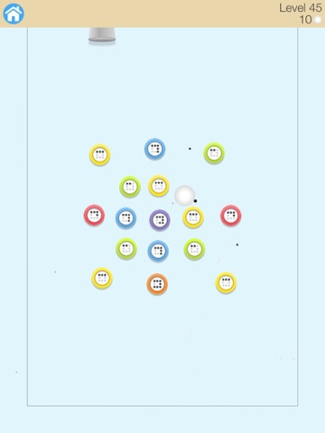 Each time you hit the peg, one dot is removed and the color changes. Once you get all the way down to the last dot, the peg shatters when you hit it! Clear a whole screen of the pegs, and you beat the level.