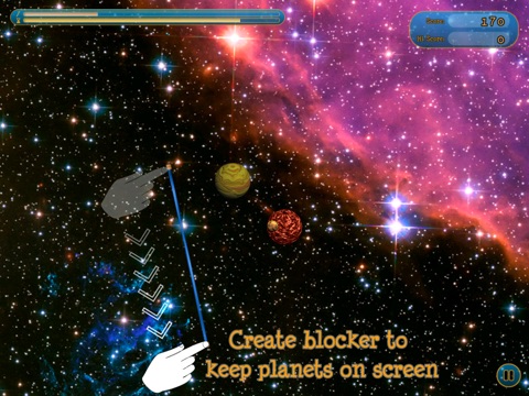 You keep planet on screen by drawing blocker with finger on screen, so planet can bounce from it. Tap on blocker to remove it, but you lose points.