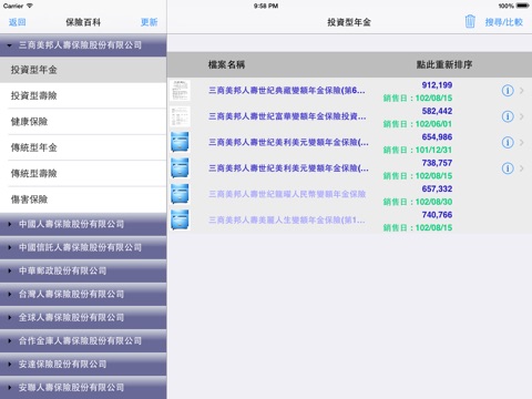 4. 提供各保險公司所有現售商品(近3000種商品)的說明, 條款, 費率, 並可比較各商品的差異