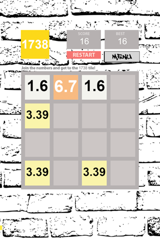 1738 is the most gangsta puzzle game out there. Slide the number tiles together to add them up. Two tiles with the same number merge to get double that number. Get the 1738 tile to win!