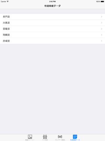 「特選戦艦データ」に特選された伝説級の戦艦のデータが見られます。