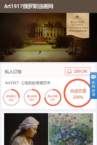中国首家俄罗斯油画私人订制平台致力于筑建文化产业“互联网+”创新模式。领航者们以“自信、勇敢、乐观、实践”为团队理念,践行着“现实和理想之间,不变的是跋涉;暗淡与辉煌之间,不变的是开拓”的企业精神,为加强中俄两国间文化交流、传播俄罗斯油画艺术做出贡献。