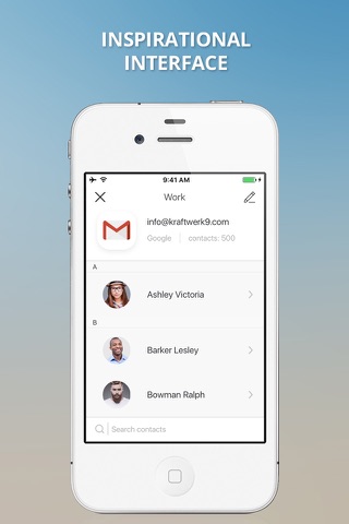 Support of popular protocols CardDAV and Exchange including Gmail, iCloud, Outlook.com and Yahoo! email services.