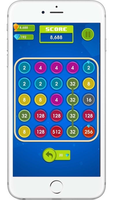 The Goal of this game, you connect the number and dont run out of moves in the board has size 5x5. Make line by create link to connect as many same value numbers of dots as you can. the longer the line, you will has more points and the longer you will survive. the number will merged add up in multiples of 2.