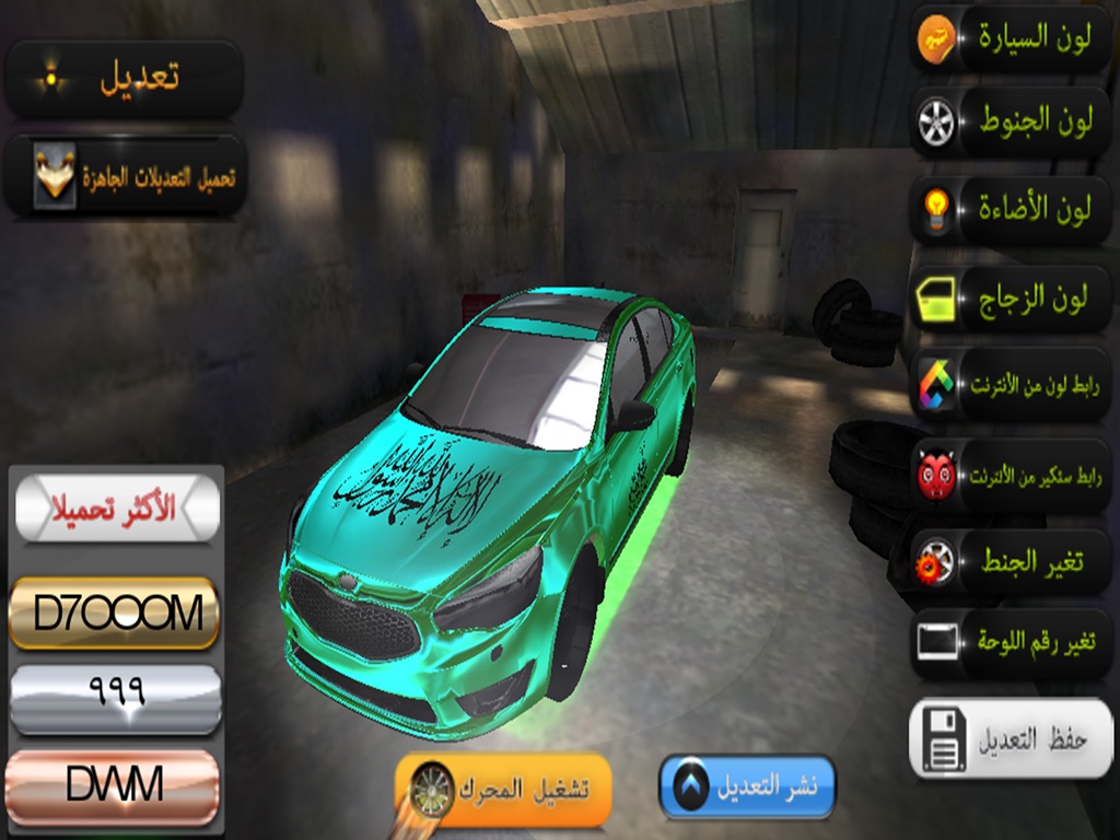 ٦- امكانية تحميل اشكال من الانترنت وتغير لون السيارة من الانترنت + اضافة ستكير