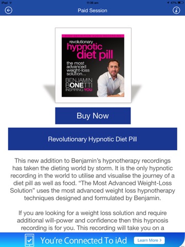 Within this cutting edge App you’ll benefit from a number of international bestselling hypnotherapy audios from renowned celebrity hypnotherapist Benjamin Bonetti,