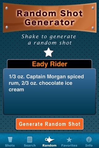 * Get the party started by letting 2000 Shots select a random shot for you. 2000 Shots has a built-in super-awesome RANDOM SHOT GENERATOR.