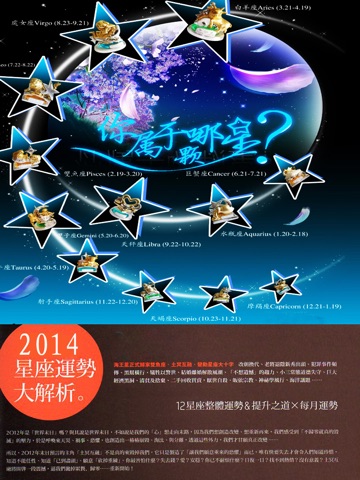 2014 Your Horoscope and what will change ? Career, love , wealth, studies in which aspects of the new year will be a breakthrough , what areas will encounter a bottleneck ? " 2014 Zodiac great resolve " to fully unlock your latest horoscope 2014 , to give you the most accurate fortune guidelines for you to break through the bottleneck , calmly deal with the difficulties and success .
