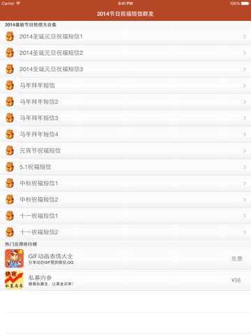 汇集最新数百条元旦、春节、五一、中秋、十一等节日的祝福短信, 可以在程序中直接作为短信, 群发给所有联系人或者指定联系人。
