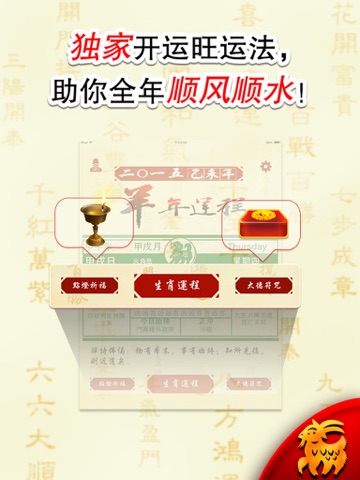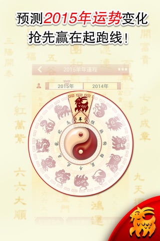 想全面掌握自己在新的一年运势凶吉吗?想知道自己和自己在乎的人在新的一年如何趋吉避凶吗?在担心自己新的一年打不开运吗?下载【2015生肖宝典】,抢先把我运势的机会!