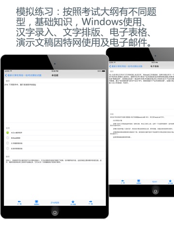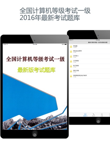 本软件为全国计算机等级考试一级题库考试的软件,精心准备了2016年最新考试题库。按照考试大纲有不同题型,基础知识,Windows使用、汉字录入、文字排版、电子表格、演示文稿、因特网使用及电子邮件。为全国计算等级考试一级考试的提供了充分的复习准备,可随时随地学习练习,有效帮助顺利通过考试,学习知识通过考试必备神器!